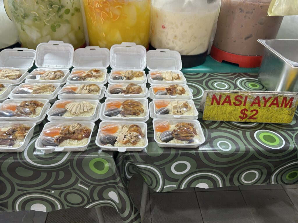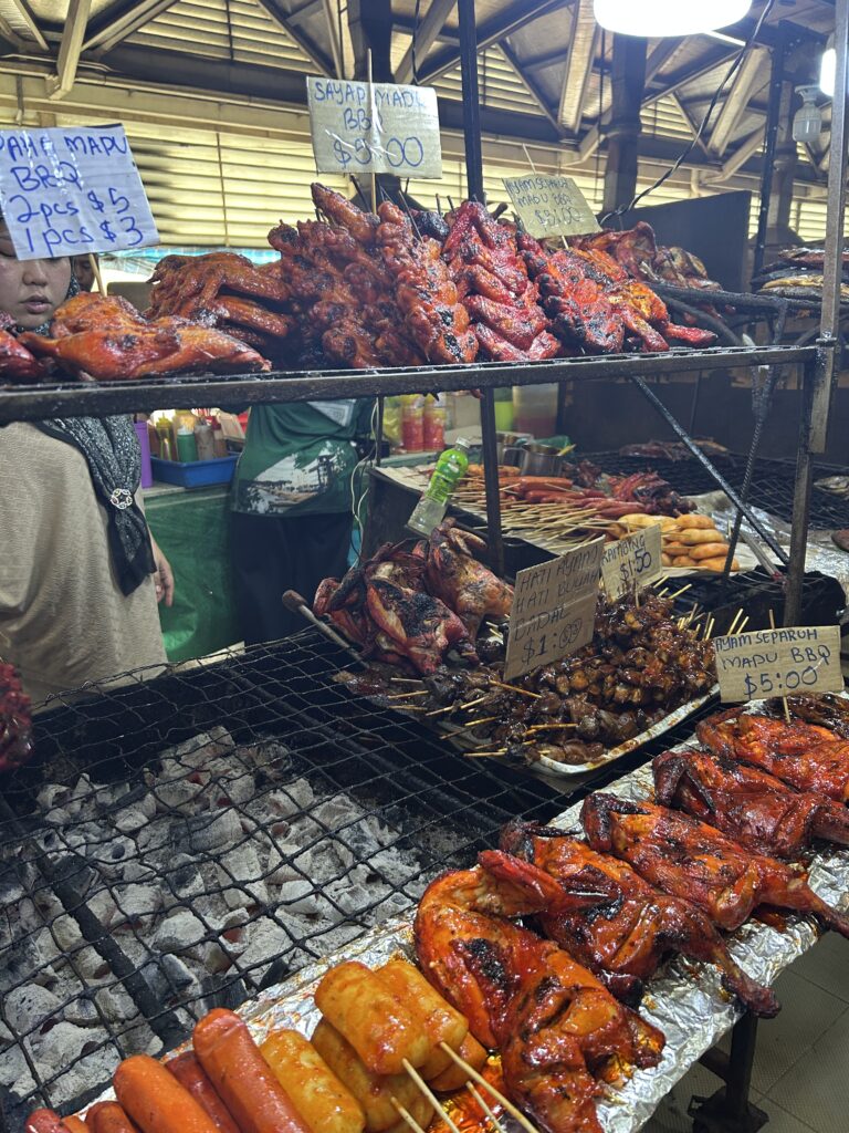 名物のサテ(串焼き)が1本$1(約100円)から楽しめたり、日本では見かけない色鮮やかな果物が並んでいたりと、安く現地の味を試すには最高の場所です。現金での支払いになります。