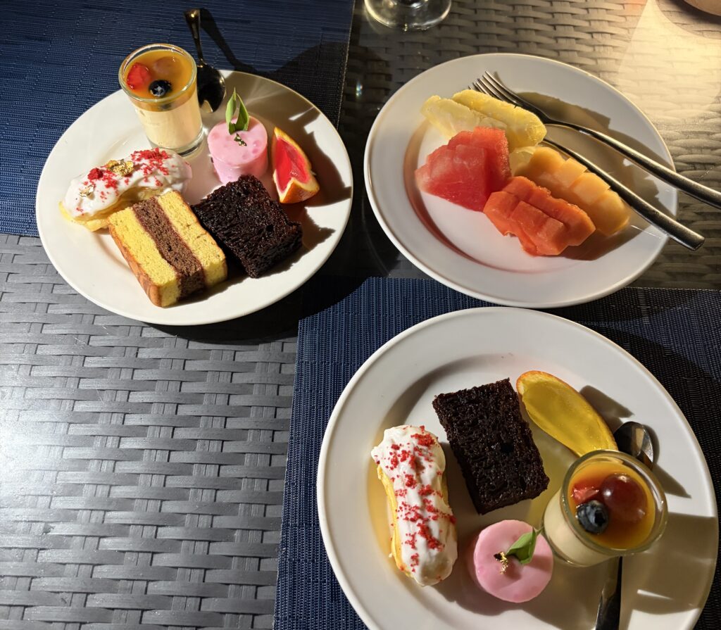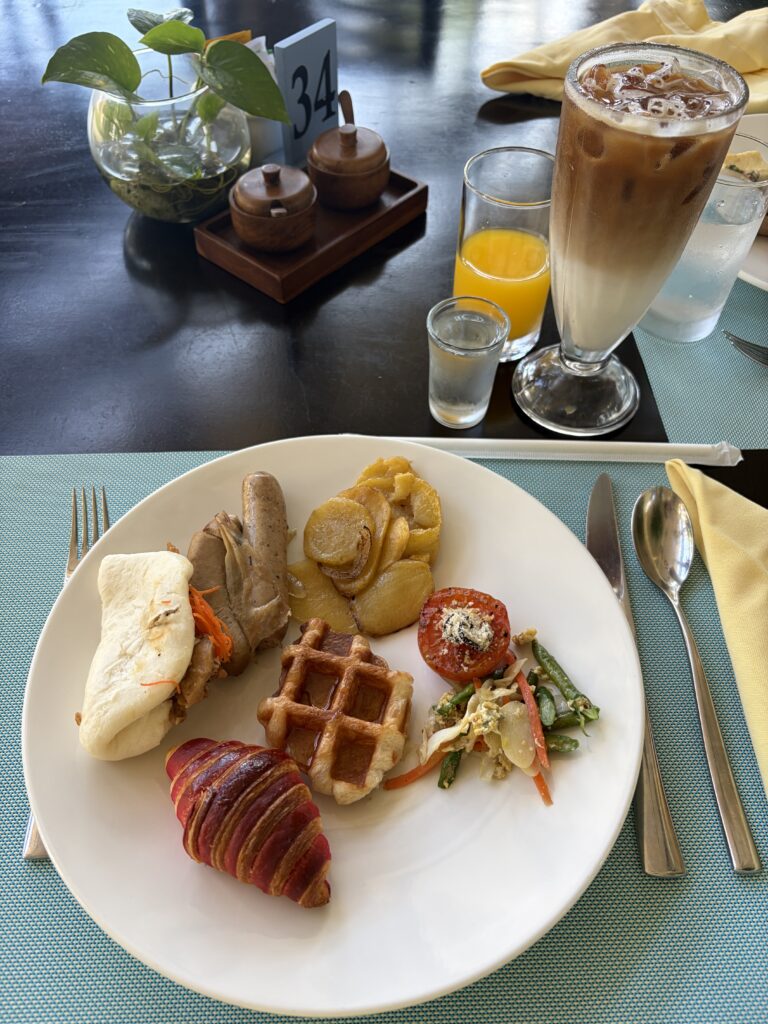 ロービー奥のLotus Cafeはオールデイダイニングとなっており、こちらでは到着日の昼食と翌日の朝食をいただきました。