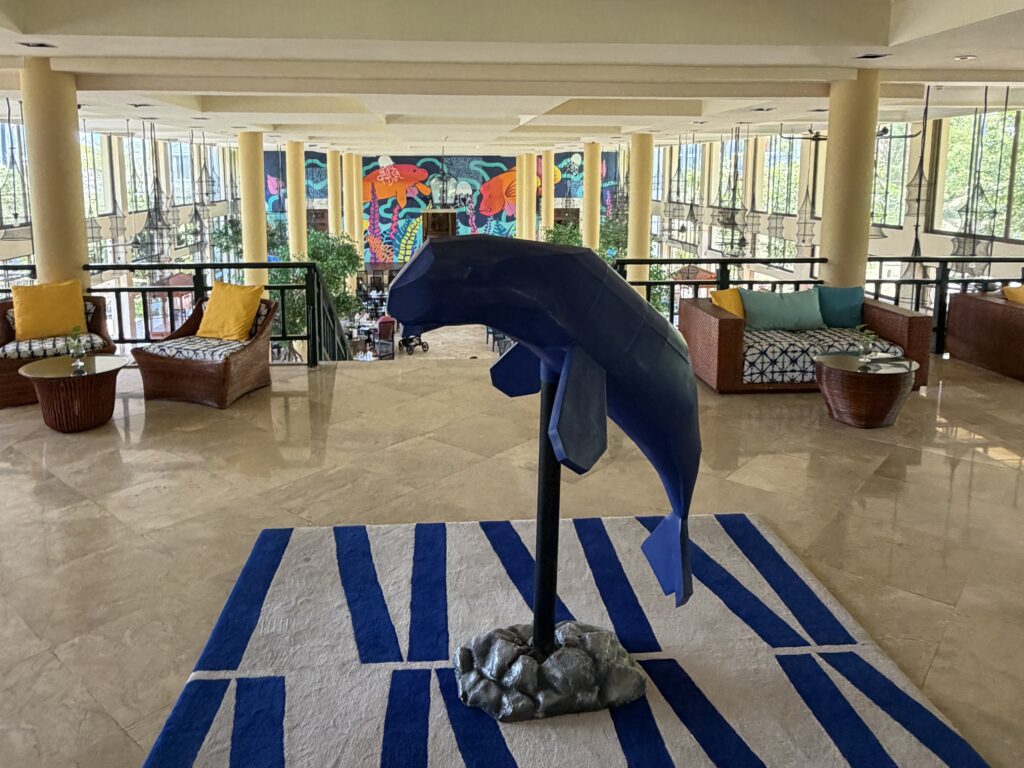 空港から無料の送迎バスにてホテルに到着へ。ジュゴンがお出迎えしてくれました。